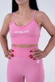 The Aurora Sports Bra is part of the three piece Aurora sets. The sports bra has a uniquely padded and shaped inset to give a push up bra effect while giving medium support. Padding is removable.
